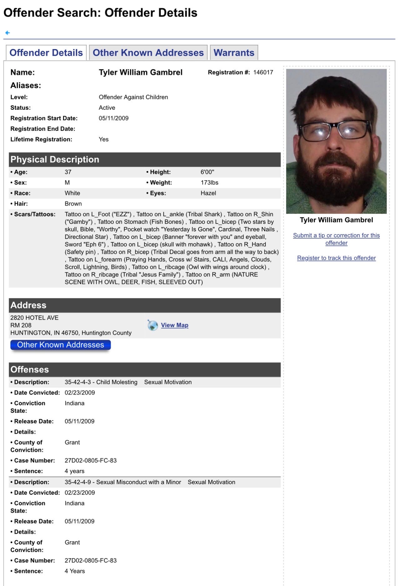 Indiana Sex OffendersTyler William Gambrel (🚨Child Secual Predator Alert 🚨)#HuntingtonCountyHoosier MugsFeb 12, 2026ShareCharges:42-4-3 - Child Molesting Sexual Motivation35-42-4-9 - Sexual Misconduct with a Minor Sexual MotivationThese charges are not new. Tyler was posted to the Facebook group “Nosey Neighbors Of Fort Wayne”. Please share to help spread awareness of these disgusting human beings.